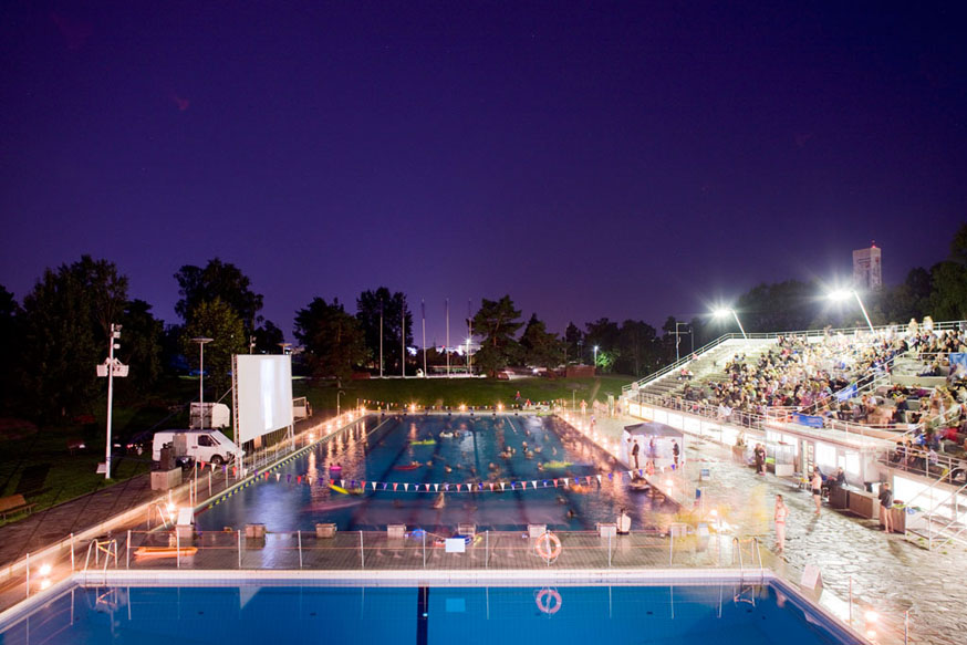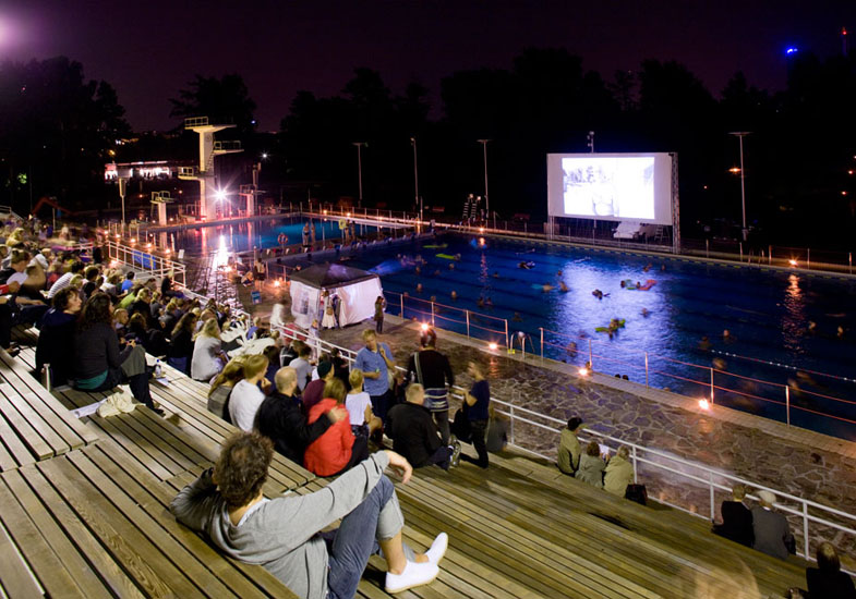 Film director PV LEHTINEN's award-winning short films gathered over 2.000 swimmers and spectators at Helsinki Swimming Stadium's open-air cinema. The screenings were accompanied by a beautiful diving show and an annual moonlight swimming. A total of nine films, including Lehtinen's two new short films, were screened during this atmospheric event.